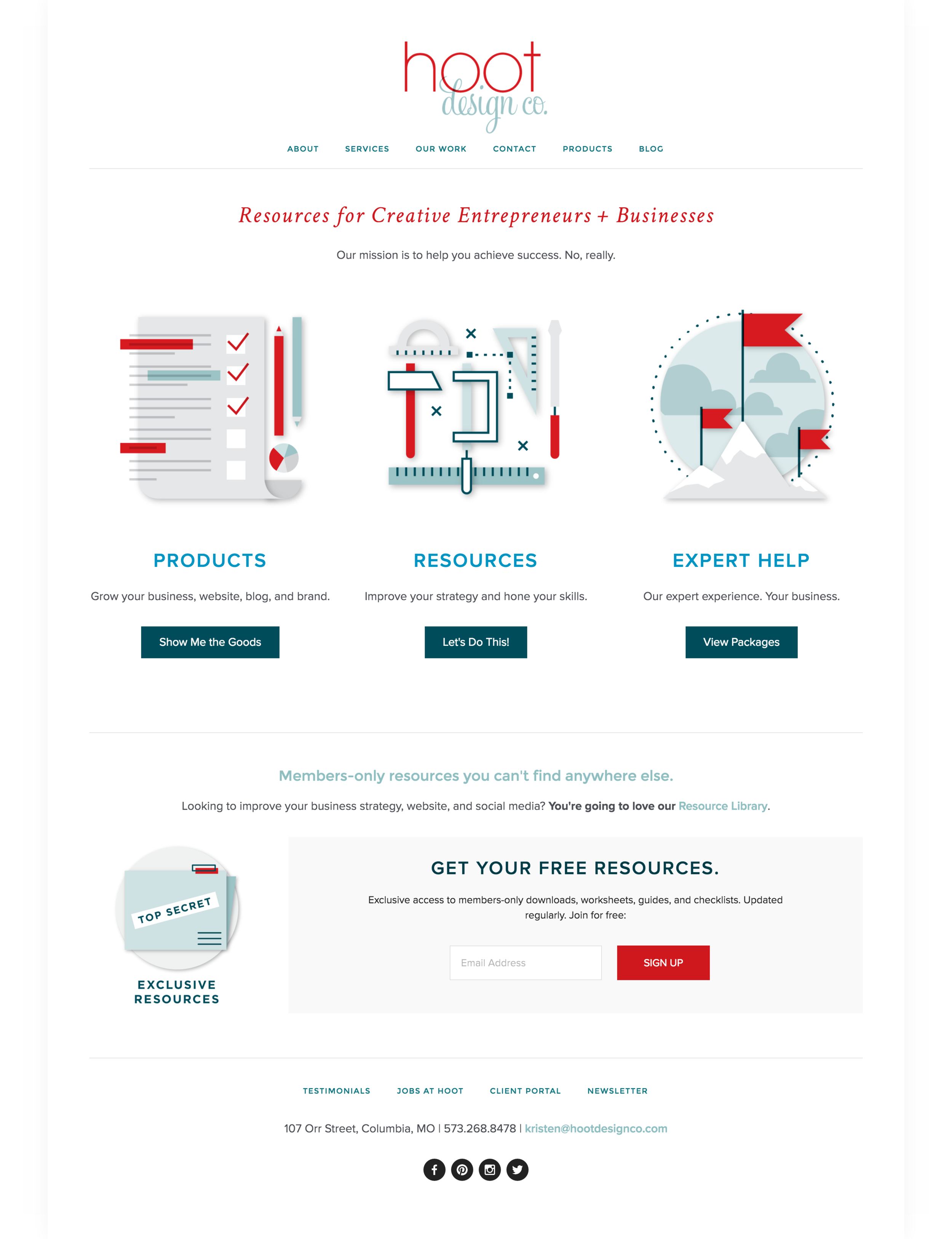 In order to reflect the shifting emphasis, I needed to completely overhaul the existing Hoot website. Here’s what I did: